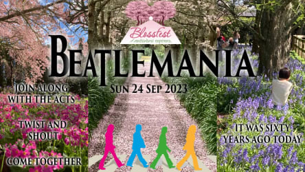 On 24-Sep-2023, watch, sing and dance along to Beatles songs amid beautiful blossoms bursting out here, there and everywhere and blackbirds singing at the NZ Cherry Blossom Festival. How much joy can you take without bursting yourself?