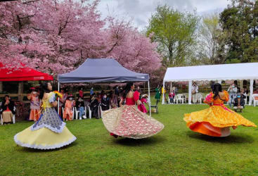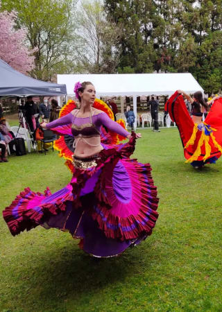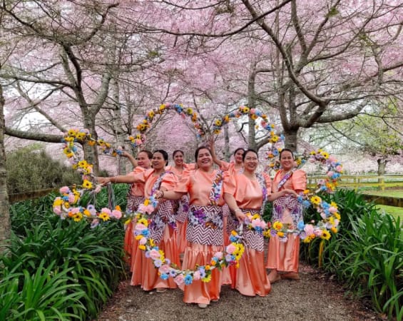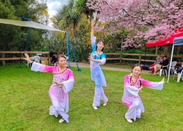 United nations of New Zealand performances from many different cultures. Maori, European, Polynesian, Chinese, Indian, Japanese, Filipino, other Asian, South American, African. Dance, Kung Fu, music and bagpipes. Young and old. Throughout the day on the main stage and elsewhere on the property. A riot of colour in the blooms, costumes and people.